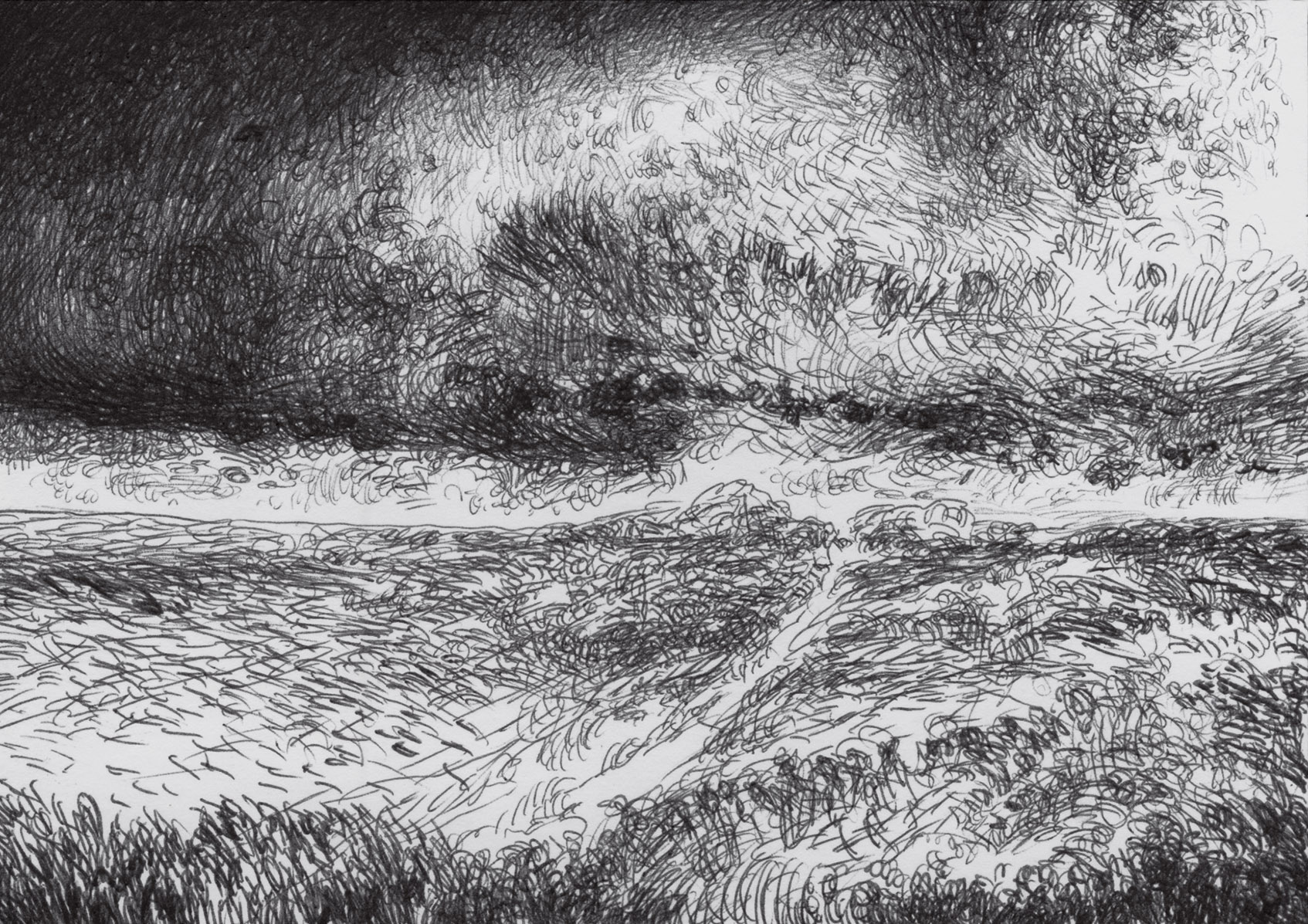 valley drawing with couds storming